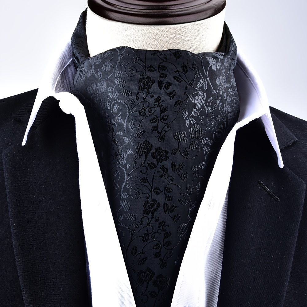 TEMU 1pc 남성 빈티지 아스코 타이 - 비즈니스 및 정장 행사용 스타일리시한 다크 블루, 레드, 블루 & 화이트 패턴 넥타이, 폴리에스터 소재, 클래식 영국 스타일, 젠틀맨 액세서리 | 빈티지 넥타이 | 내구성 있는 폴리에스터