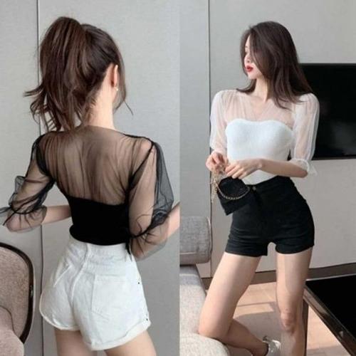 [엄지척]니트 하객룩 티셔츠 패션 모임 메쉬 직장인 망사티셔_19643011_667501