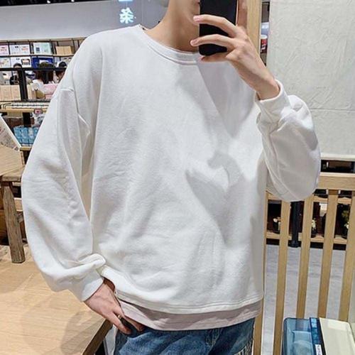 [셀러허브_여성트랜드패션]남자 빅사이즈 루즈핏 긴팔 심플 맨투맨 데일리 남성 가을티 남자 기모 스트릿..