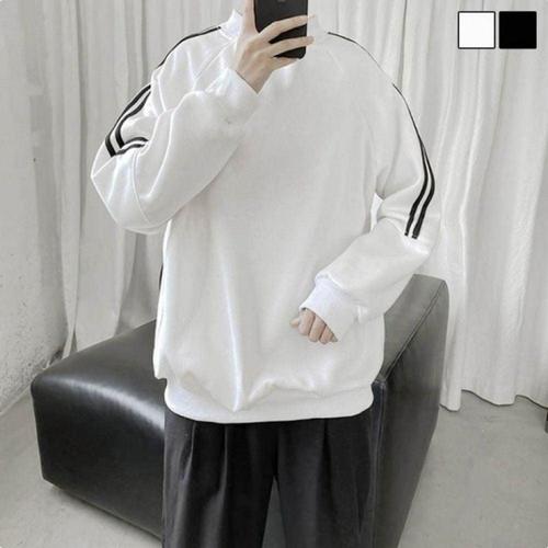 [셀러허브_여성트랜드패션]남자 남자긴팔티셔츠 흰색라인 검정색 가을티