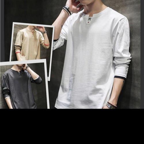 [셀러허브_여성트랜드패션]긴팔티 남자 레이어드티 가을티 2색 남성 단추 오버핏 맨투맨 티셔츠 무지 가..