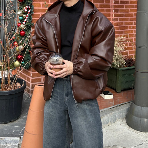 [웰스프링]웰스프링 후드 탈부착 인조 가죽점퍼 MCOWS7029