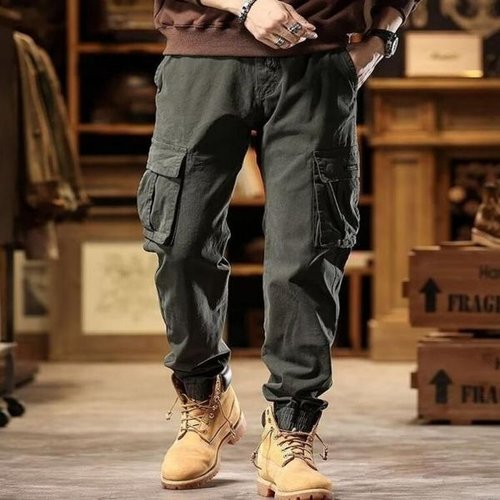 S-4XL 빅사이즈 밴딩 스판 카고바지 남성 여름 면 작업복 바지 건빵 밴드 봄 여름 가을 겨울 포켓 면