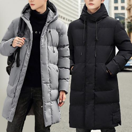 중간 길이 겨울 재킷 남성용 따뜻한 롱 코트 캐주얼 퀼팅 패딩 재킷 단색 야외 파카 플리스 안감 두꺼운 아우터