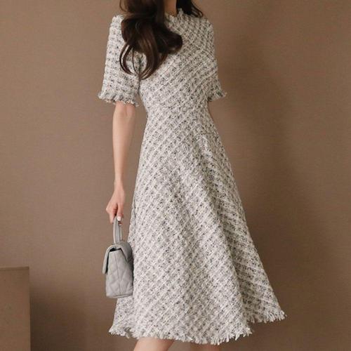 고급스런 반팔 트위드 원피스 결혼식 하객룩 상견례