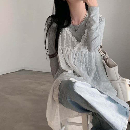 [셀럽하우스]가디건 UKHT5562 기본티 셔츠 롱나시 레이어드룩 시스루 러블리