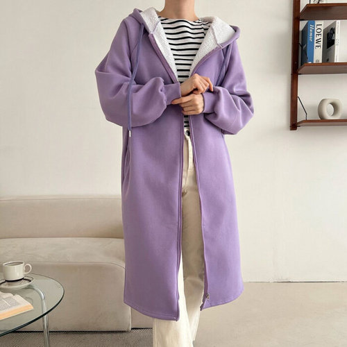 [끌레아]양털 오버핏 집업 후리스 겨울 롱 기모 후드 자켓 가을 여성 얇은 롱