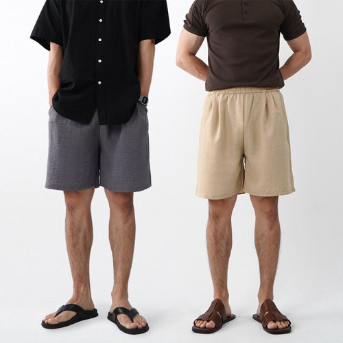 [셀러허브_여성트랜드패션]남자린넨반바지 허리밴딩 마실룩 여름 바지