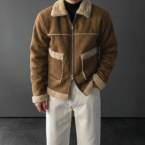 [엠클로] 남자 오버핏 빅사이즈 스웨이드 양털 뽀글이 무스탕 라이더 자켓 점퍼_P075840939