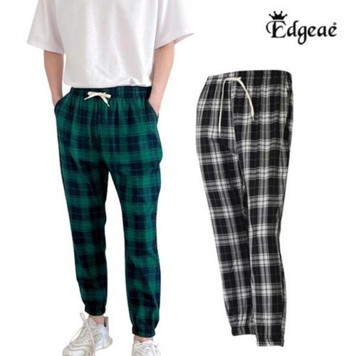 [보스케]MARIO 남성 여성 여름 밴딩 조거 체크 편한 9부 면 바지