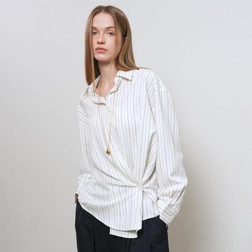 [제너럴아이디어]WOMAN 루즈핏 버튼 랩 스트라이프 셔츠 [WHITE] / GF1LSH506