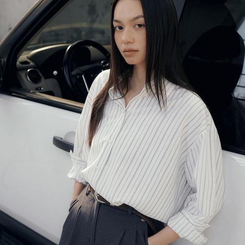 [제너럴아이디어]WOMAN 루즈핏 버튼 랩 스트라이프 셔츠 [2COL] / GF1LSH506