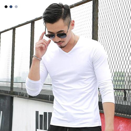 남성용 캐주얼 만능 베이스 슬림 핏 마름감 브이넥 긴소매 티셔츠 안감 상의