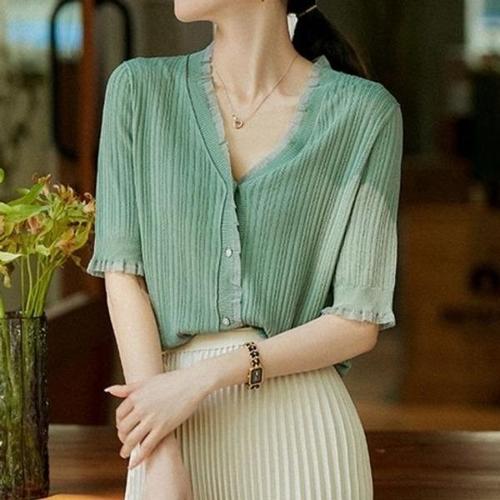 [엄지척]가디건 레이스 브이넥 그린 썸머 여름 반팔_19799367_667501