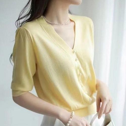 [엄지척]썸머 니트 여름 옐로우 티 반팔 브이넥_19681831_667501