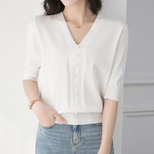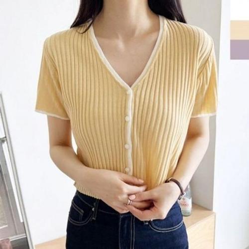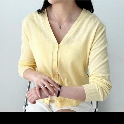 [엄지척]니트 뱀부 여름 가디건 기본 브이넥 사무실 반팔니트_19800947_667501
