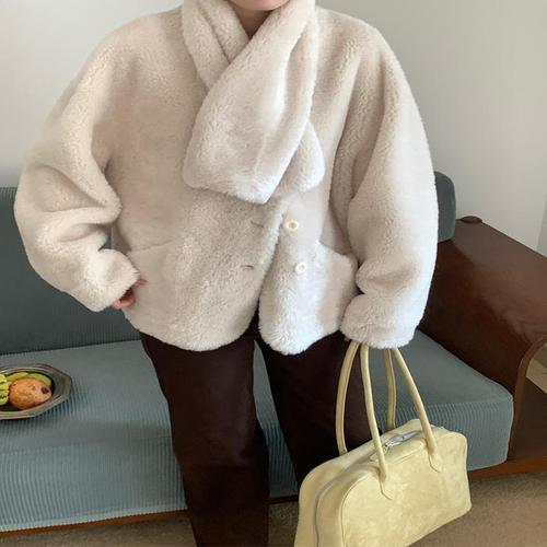 [모어오브]에펠 퍼 코트 목도리 세트 숏코트 아우터