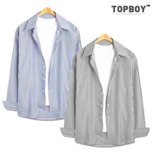 [탑보이] 잔스트라이프 오버핏 긴팔셔츠 (HE001)