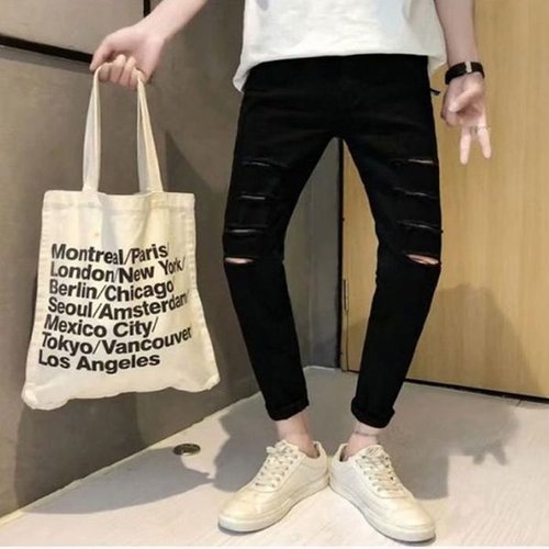 [셀러허브_여성트랜드패션]남자 스키니 블랙진 데님 컷팅 청바지 찢청