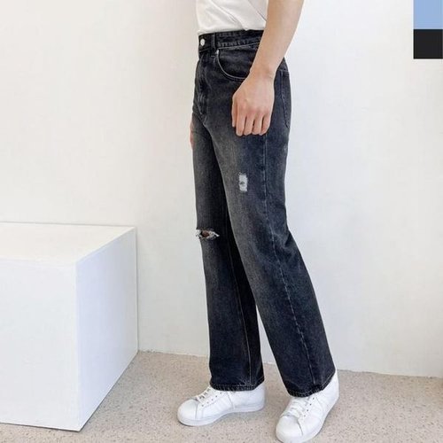 [모로엠]남자 빅사이즈 캐주얼 와이드 레그 찢청 데님 팬츠 DMS-JEA-Q4152138