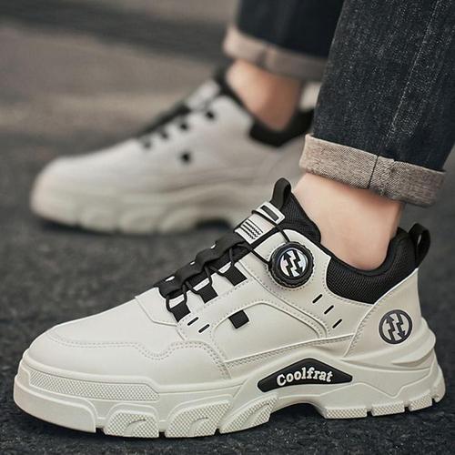 KOPN 남자 신발 가죽 캐주얼 신발 키높이 아버지 신발 크로스보더 두꺼운 바닥 판화 운동화 남자 흰색 신발