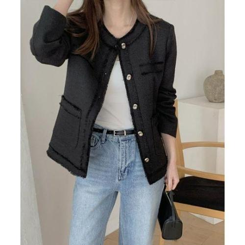 [제이0]수술 라운드 버튼 기팔 트위드 자켓