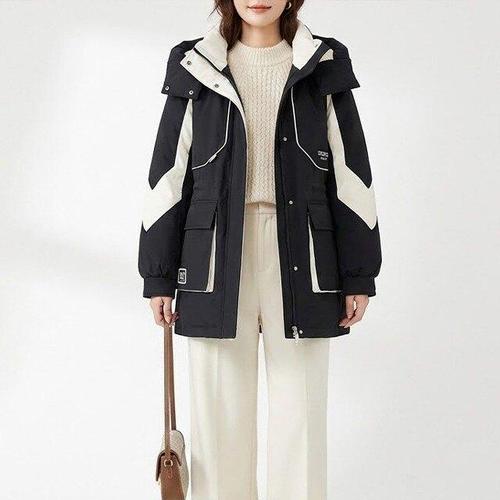 [핑크엘리제]배색 후드 파카 스트링 캐주얼 벡터스숏패딩