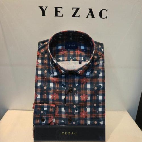 [예작]기모 플라워 프린트 체크무늬 일반핏 긴소매 셔츠 (YJ3WUA776/RE)