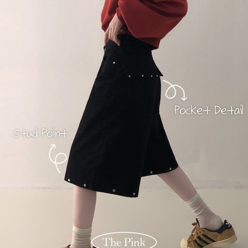 더핑크 / 무그 하이웨스트 스터드 버뮤다 반바지 팬츠
