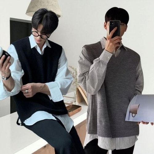조끼 레이어드 니트 남자 셔츠 패션 남친룩 훈남 WFLQ8HQ