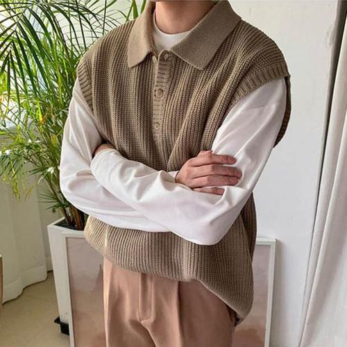 남성 오버핏 니트베스트 베이직 남친룩 간절기 조끼 (WFJSM5L)