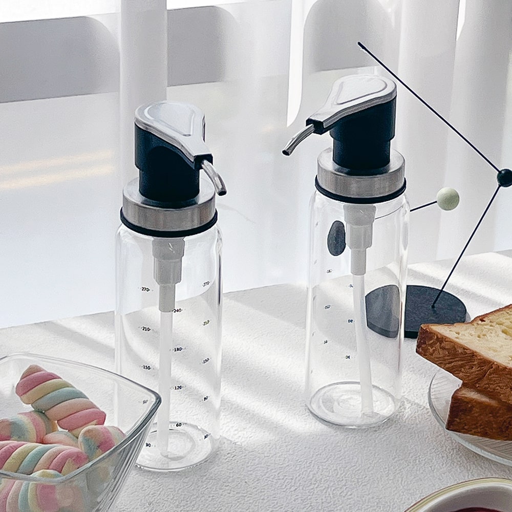 내열유리 펌프 시럽병 300ml 2P 카페 소분용기 오일병