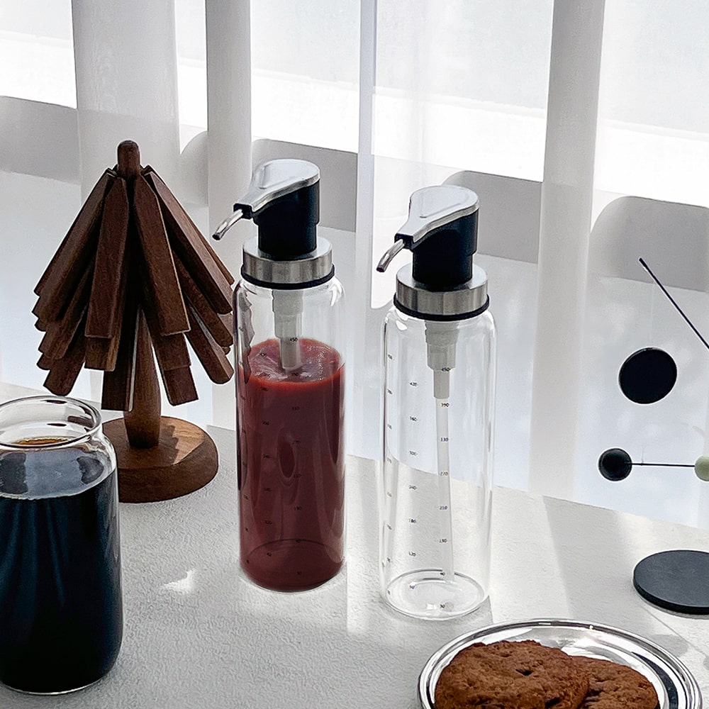 내열유리 펌프 시럽병 500ml 2P 카페 디스펜서 오일병