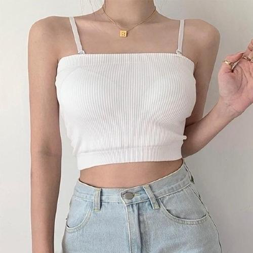 여성 핫 이너캡 내장 끈 나시 여름 탑 슬리브리스 브