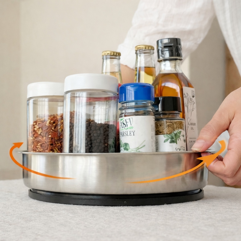360 회전 스테인리스 회전트레이 양념통 다용도 냉장고 수납정리 실버/블랙