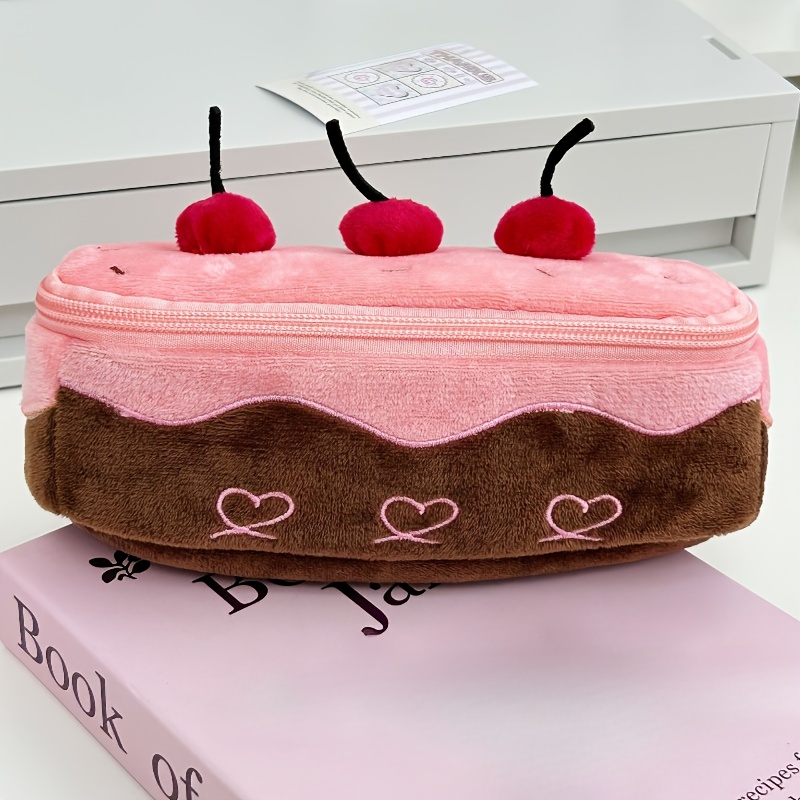 TEMU 체리 케이크 플러시 펜 케이스 - 핑크 연필 & 메이크업 파우치 대용량 휴대용 정리함 여행용 데스크 - 귀여운 카툰 디자인 케이크 & 벚꽃 데스크 정리함|필통