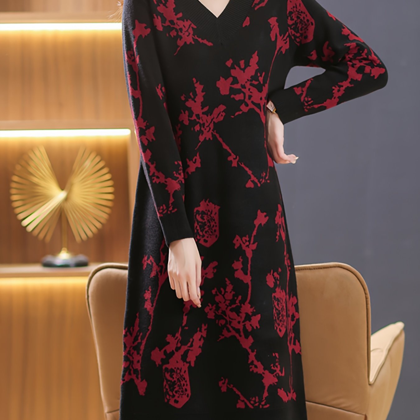 TEMU 플러스 사이즈 - 플러스 사이즈 - 가을, 겨울을 위한 스타일리시한 롱 스웨터 드레스. 이 우아한 드레스는 신축성 있는 원단을 사용했습니다.