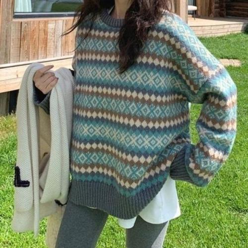 [엄지척]여성니트티 겨울 라운드넥 에스닉 니트 가을 스웨터_19682218_667501