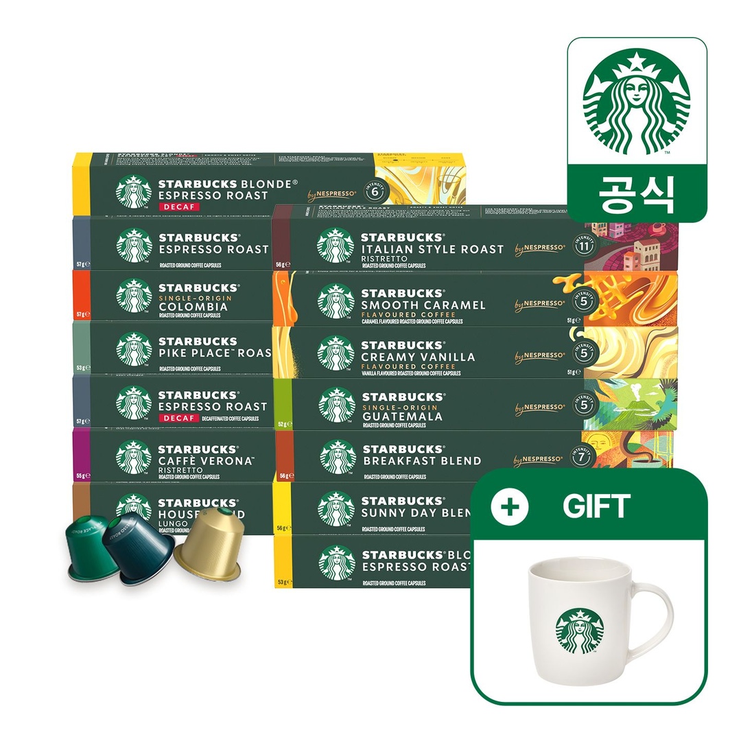 [쿠폰 4%] 스타벅스 네스프레소 캡슐 커피 10캡슐 1박스 골라담기 (6세트 구매시 그린머그 350ml)