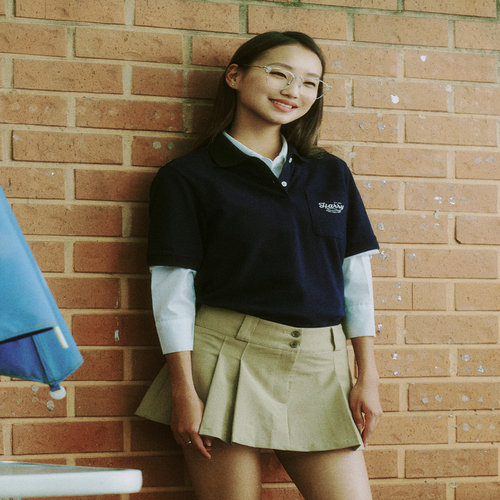 헤지스 여성 [스테디셀러][면]네이비 로고 자수 반소매 카라 티셔츠 (WSTS5B305N2)