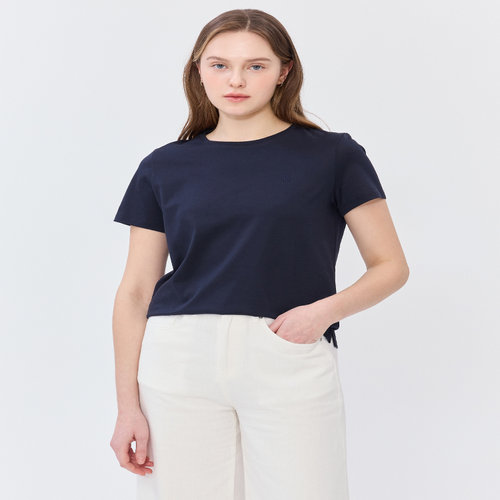 헤지스 여성 [스테디셀러][면100]네이비 로고 자수 반소매 티셔츠 (WSTS5B330N2)