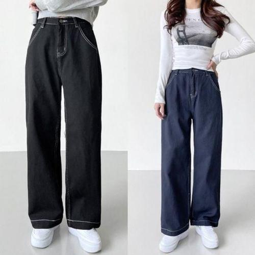 [에이치플러스몰]여성용 캐주얼 레트로 내추럴코튼 스티치 일자슬랙스