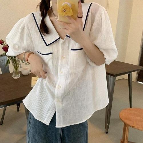 [엄지척]내추럴 편안한 거즈면 여자 셔츠 카라 베이직 남방_19642744_667501
