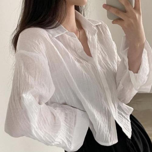[엄지척]네추럴 거즈면 시원한 시스루 여자 폴업 셔츠 3Color_19643322_667501