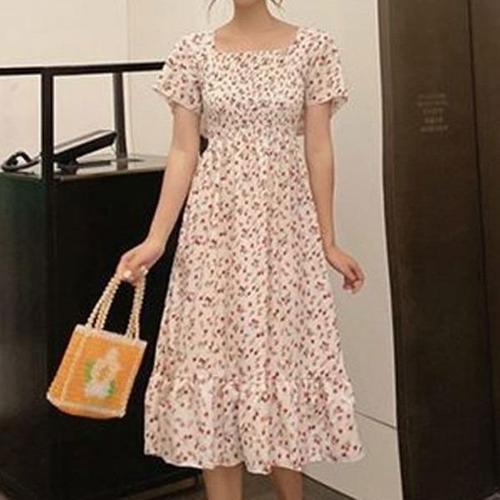 [엄지척]플라워패턴 스모크 롱원피스 체형커버 스퀘어넥_19910750_667501
