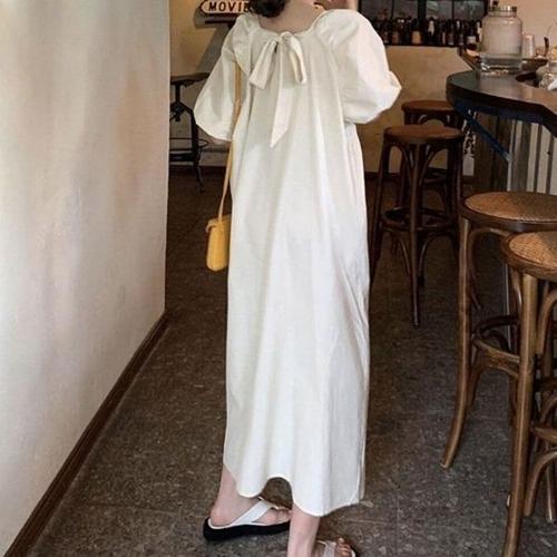 [엄지척]뒷스트링 리본 원피스 U넥 넉넉한핏 체형커버_19910338_667501