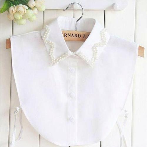 진주 큐빅 포인트 넥케이프 페이크 카라 이너셔츠