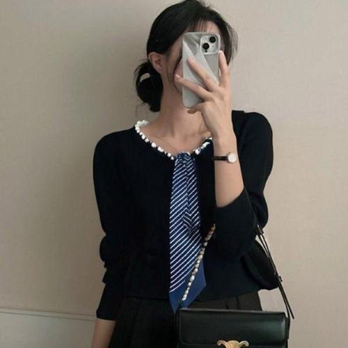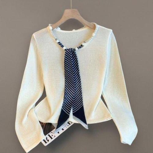 [신상오픈런]여성 스트라이프 넥타이 긴팔 니트 스카프