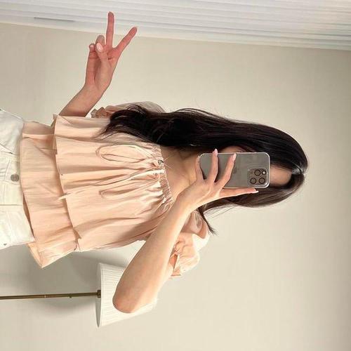 [옷자락]여자 3컬러 레이어드 리본 포인트 스퀘어넥 블라우스
