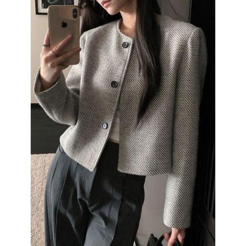 2026 트위드 코리아 고품질 숏 트위드 재킷 여성 한국 의류 싱글 브레스티드 레이디 블레이저 올매치 캐주얼 코트 탑